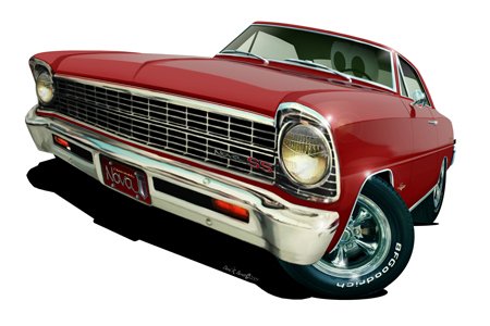 24" DB 1966-67 Chevy Nova ss *Original Art* Car Wall Graphic Color Vinyl Decal Sticker Home Game Room Decor Feature